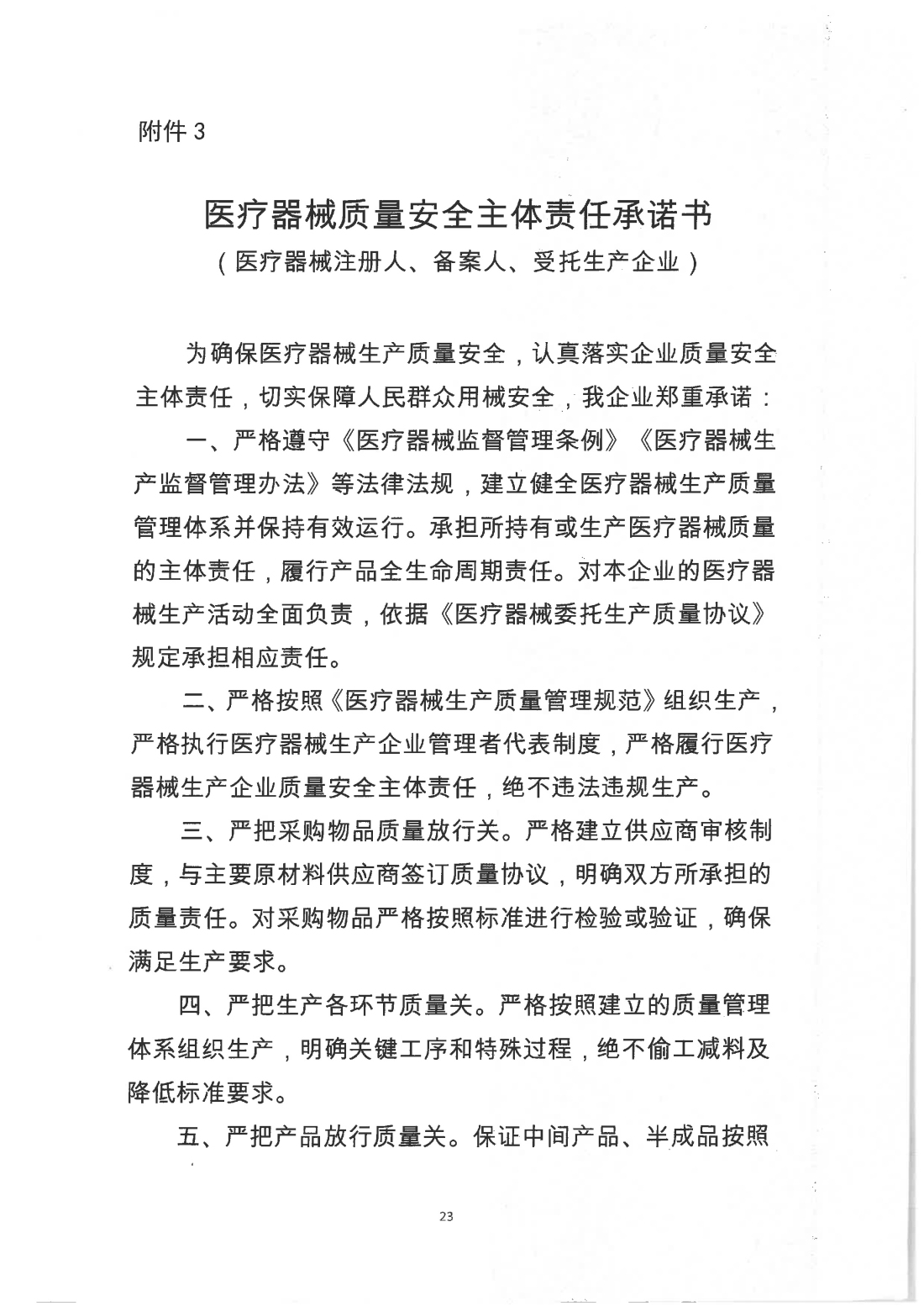 医疗器械质量安全主体责任承诺书(医疗器械注册人、备案人、受托生产企业)