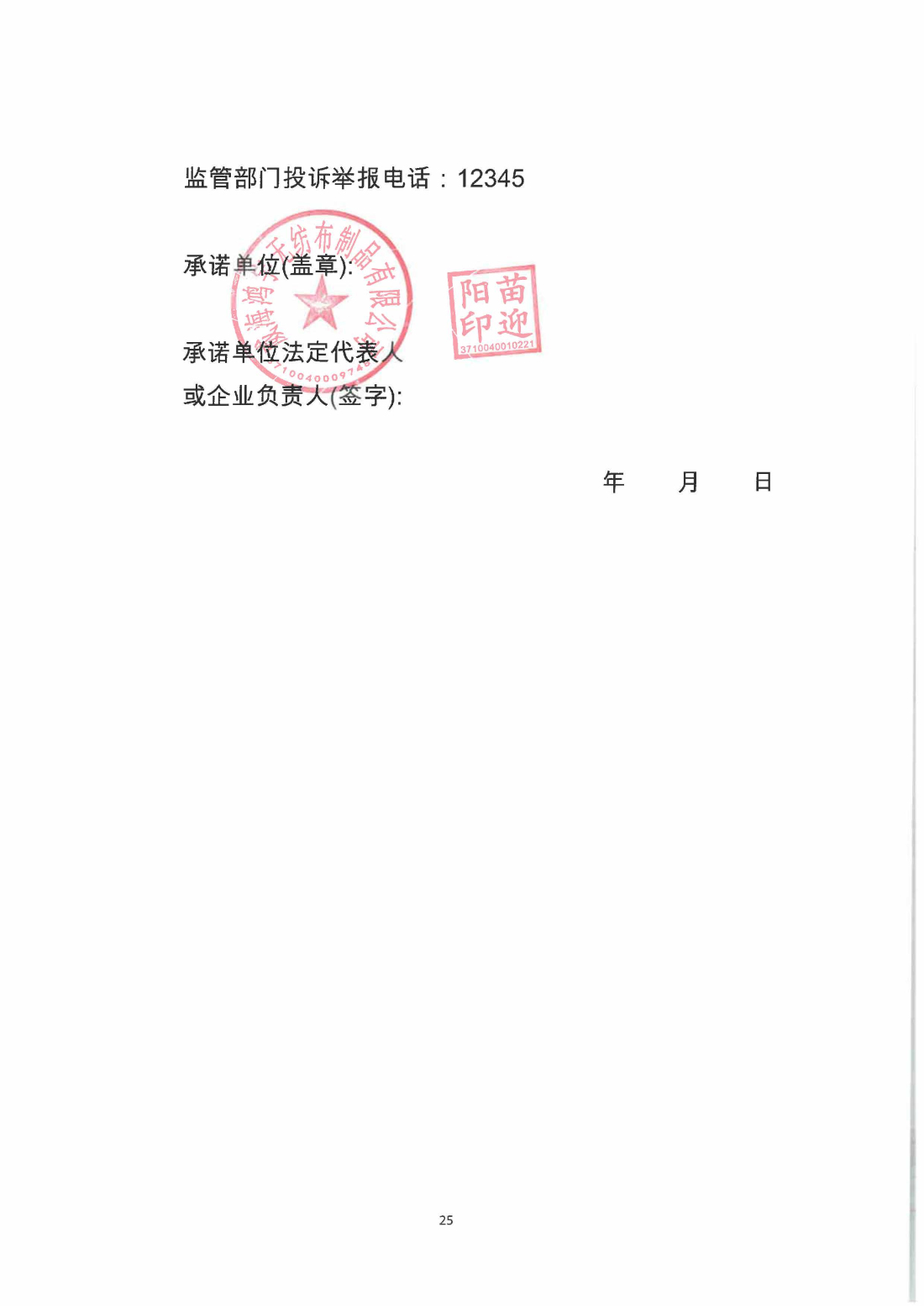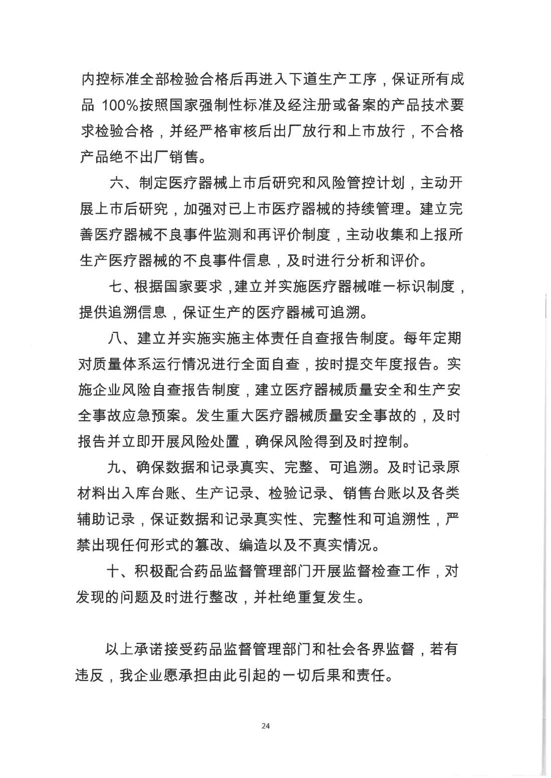 医疗器械质量安全主体责任承诺书